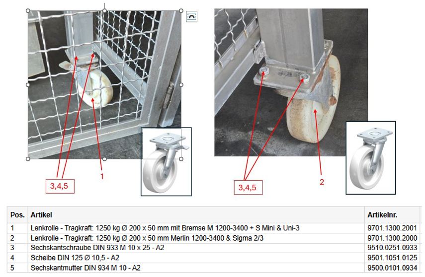 Lenkrolle - Tragkraft: 1250 kg Ø 200 x 50 mm mit Bremse