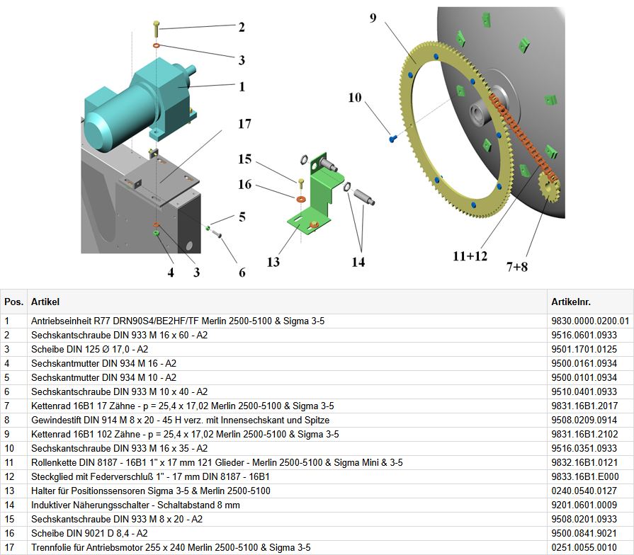 Kettenrad 16B1 17 Zähne - p = 25,4 x 17,02