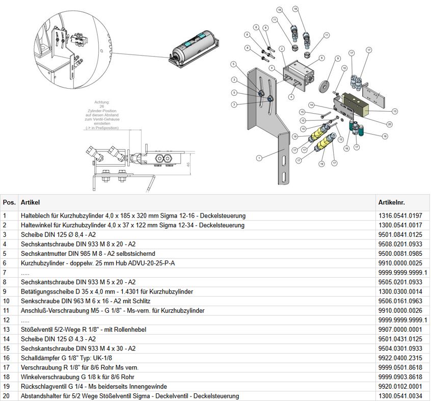 Kurzhubzylinder - doppelw. 25 mm Hub